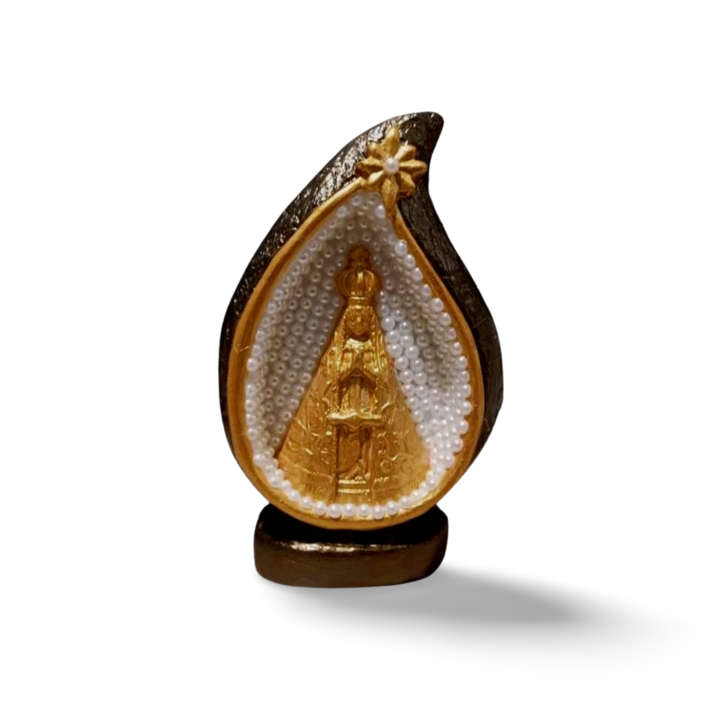 Nossa Senhora na Gota Sagrada, 13cm, Gesso, Peça Única, Decoração Religiosa